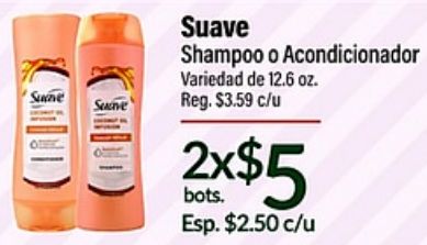 suave suve shampoo acondicionador variedad reg. $c/u x$bots. esp.