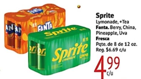 fanta sprite lymonade+tea berry, china, pineapple, fresca pqte. reg. $c/u