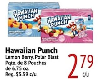 hawaiian punch lemon berry polar blast pqtede pouches reg. $c/u