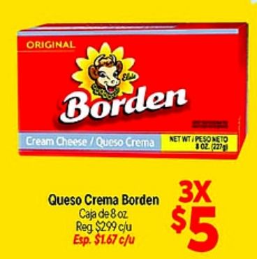 original borden cream cheese/queso crema peso neto queso caja $c/u