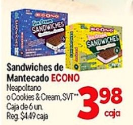 sandwiches mantecado econo neapolitano cookies cream caja $caja