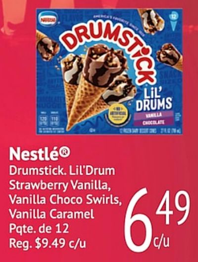 drums nugge lil' vehilla chocolate nestléⓡ drumstick lil'drum strawberry vanilla choco swirls, caramel pqte. reg. $c/u