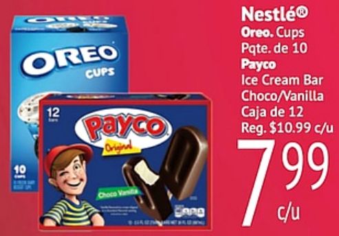 oreo cups payco original choco vanit caro nestléⓡ pqte. cream choco/vanilla caja reg. $c/u