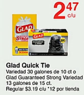 glad stro quick variedad alones guaranteed strong regular $c/u *por tienda