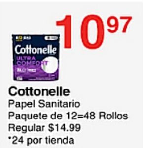 cottonelle ultra comfort papel sanitario paquete =rollos regular $*por tienda