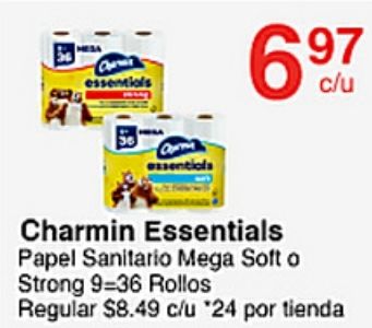 essentials corna charmin papel sanitario mega soft strong rollos regular $c/u *por tienda