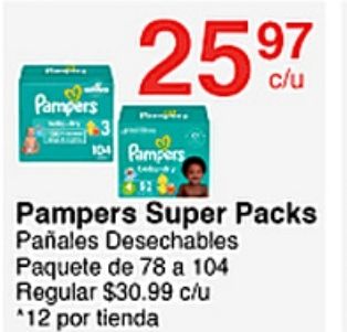 pampers super packs paƱales desechables paquete regular $c/u *por tienda