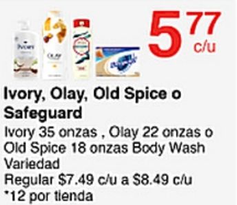 ivory olay, spice safeguard onzas, olay onzas body wash variedad regular $c/u *por tienda
