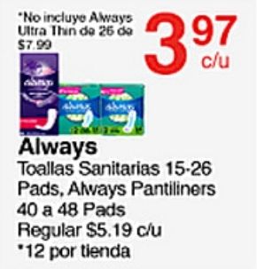 incluye always ultra thin $c/u toallas sanitarias pads pantiliners regular *por tienda