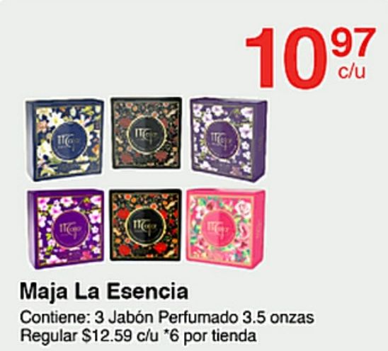 esencia contiene: jabón perfumado onzas regular $c/u *por tienda