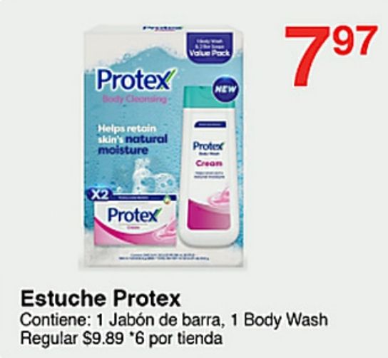protex value pack helps retain skin's natural moisture crean estuche contiene: jabón barra body wash regular $*por tienda
