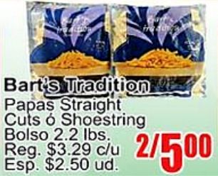 bart's tradition papas straight cuts shoestring bolso reg. $c/u /esp. $ud.