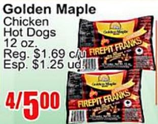 golden maple chicken dogs reg. $c/u firepit franks esp. /firepit