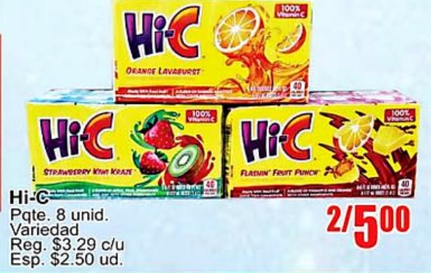 orange lavaburst hi-c strawberry krate pqte unid. variedad reg. $c/u esp. $ud. rainin fruit punch parfe