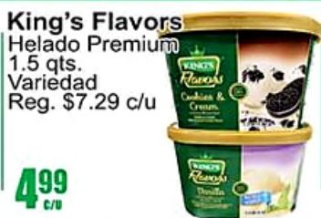 helado king's flavors premium ving variedad rovos reg. $c/u cookies cream flevoss