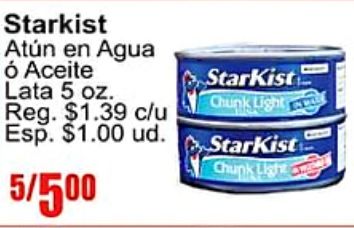 starkist atĂșn agua aceite lata reg. $c/u esp. $ud. /starkist chunk light