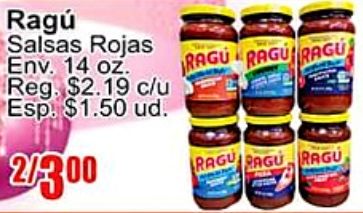 ragĂș salsas rojas reg. $c/u esp. $ud. /ragu ragu