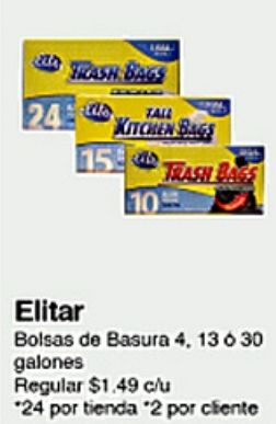 trash bags tall kitchen elitar bolsas basura alones regular $c/u *por tienda "por cliente