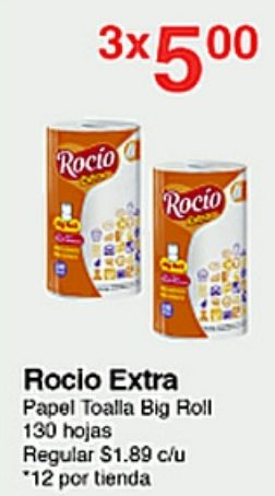 rocio xrocio extra papel toalla roll hojas regular $c/u *por tienda