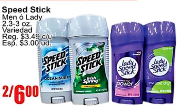 speed stick lady variedad reg. $c/u esp. $ud. ocean surf /irish spring power chisn invisible