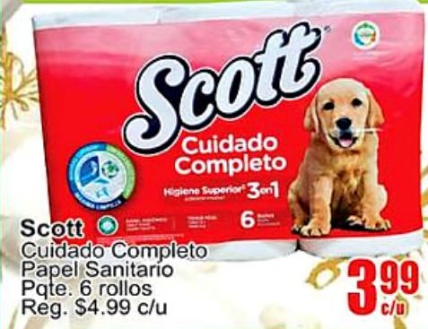 scott cuidado completo higiene superior papel sanitario pqte rollos reg. $c/u