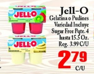 jello jell-o gelatina pudines variedad incluye sugar free pqte reg.