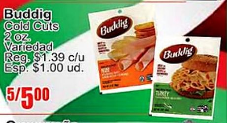 buddig cold cuts variedad reg. $c/u esp. $ud. /buddig turkey