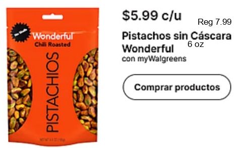 wonderful chili roasted pistachios $c/u pistachos cáscara mywalgreens comprar productos