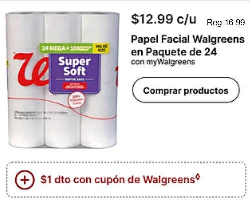 super soft value $c/u papel facial walgreens paquete mywalgreens comprar productos $dto cupón