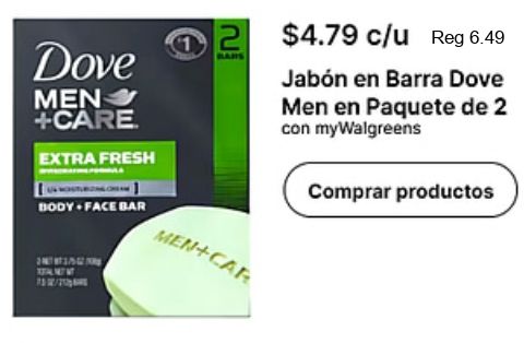 $c/u bans dove +care extra fresh body face men+car jabón barra paquete mywalgreens comprar productos