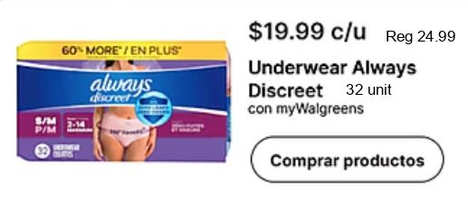 more/en plus burg always discreet $c/u underwear unit mywalgreens comprar productos