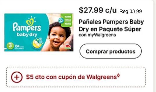 pampers baby $c/u pañales paquete súper mywalgreens comprar productos $dto cupón walgreens