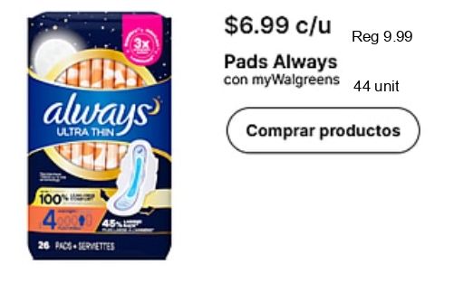 always ultra thin $c/u pads mywalgreens unit comprar productos pacs serviettes