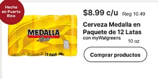 puerto rico medalla light cans $c/u cerveza paquete latas mywalgreens comprar productos