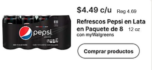 pepsi $c/u refrescos lata paquete mywalgreens comprar productos