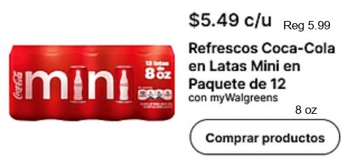 $c/u refrescos coca-cola latas mini paquete mywalgreens comprar productos