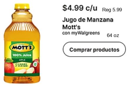 mott's juice $c/u jugo manzana mywalgreens comprar productos