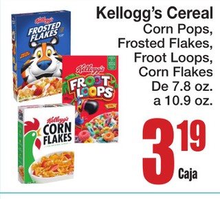 Kellogg's Cereal Corn Pops, Frosted Flakes, Froot Loops, Corn Flakes De 7.8 oz. a 10.9 oz.