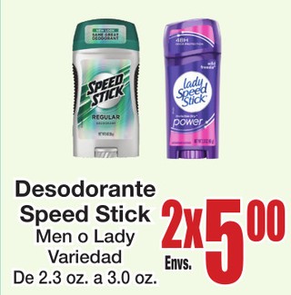 Desodorante speed stick men o lady variedad de 2.3 oz. a 3.0 oz.