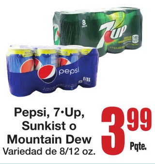 Pepsi, 7-Up, Sunkist o Mountain Dew Variedad de 8/12 oz.