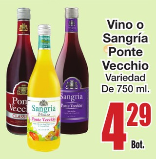 Vino o Sangria Ponte Vecckio Variedad De 750 ml.