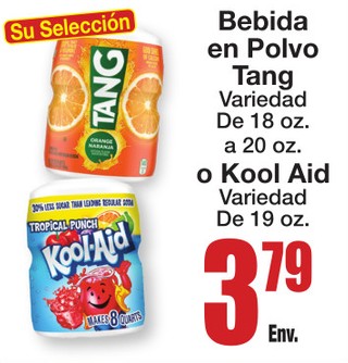 Bebida en Polvo Tang Variedad De 18 oz. a 20 oz. o Kool Aid Variedad De 19 oz.