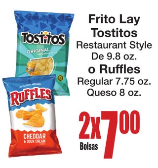 Frito Lay Tostitos Restaurant Style De 9.8 oz. o Ruffles Regular 7.75 oz.