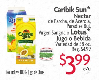Caribik Sun Nectar de Parcha, de Acerola, Paradise Bul, Virgen Sangria o Lotus Jugo o Bebida Variedad de 58 oz.
