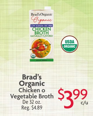 Brad's Organic Chicken o Vegetable Broth De 32 oz.