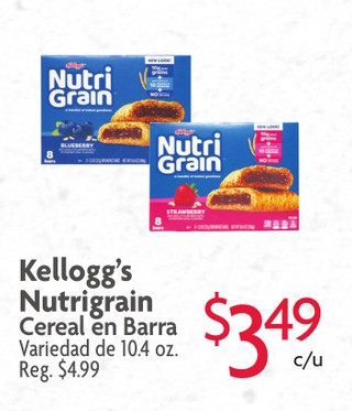 Kellogg's Nutrigrain Cereal en Barra Variedad de 10.4 oz.