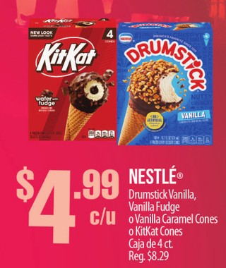 NESTLÉ® Drumstick Vanilla, Vanilla Fudge o Vanilla Caramel Cones o KitKat Cones Caja de 4 ct.