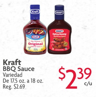 Kraft BBQ Sauce Variedad De 17.5 oz. a 18 oz.