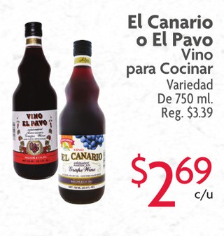 El Canario o El Pavo Vino para Cocinar Variedad De 750 ml.