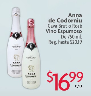 Anna de Codorniu Cava Brut o Rose Vino Espumoso De 750 ml.
